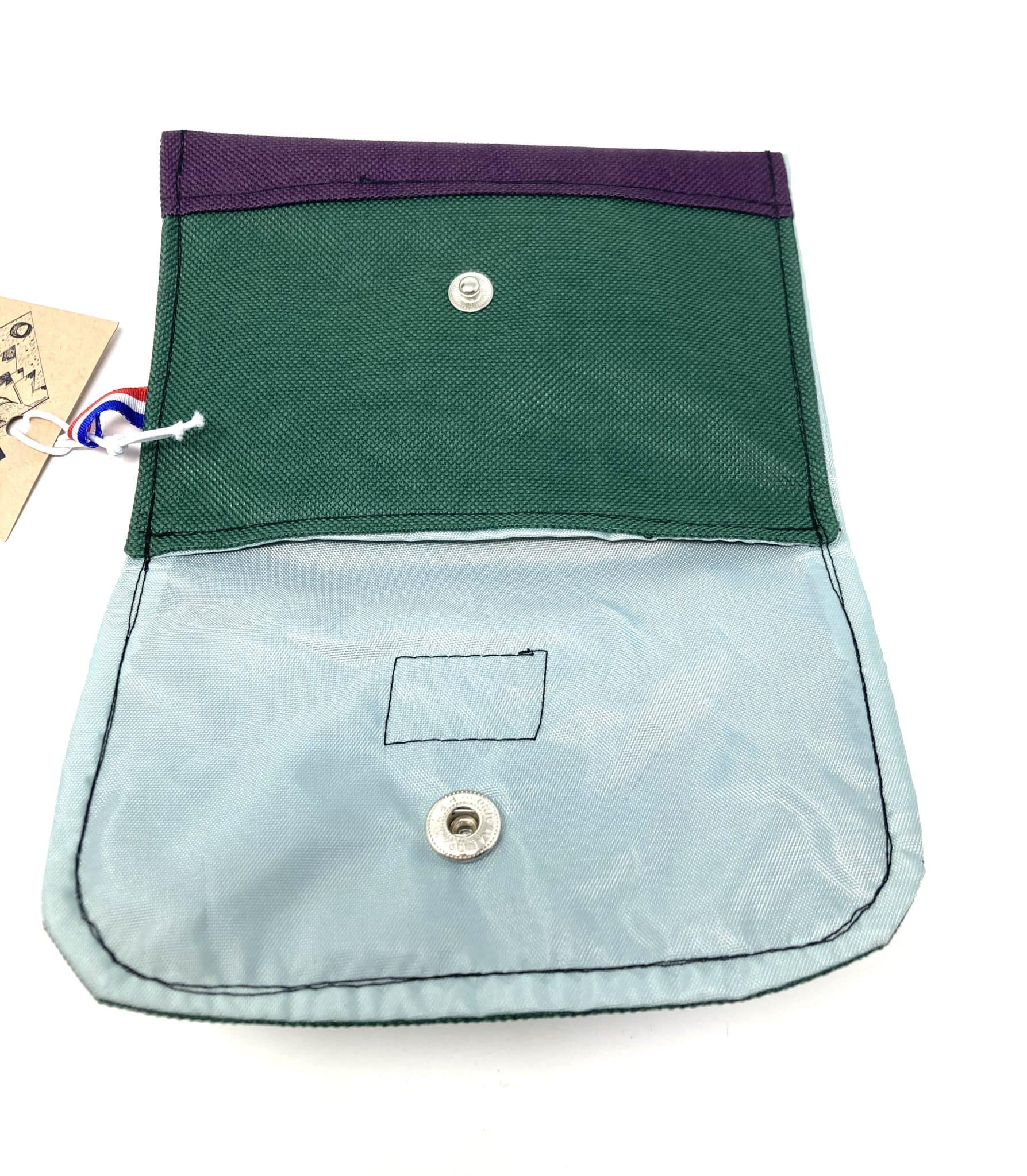 Pochette à savon réalisée à partir de chutes de toile et de toile de tente issues de l’upcycling.