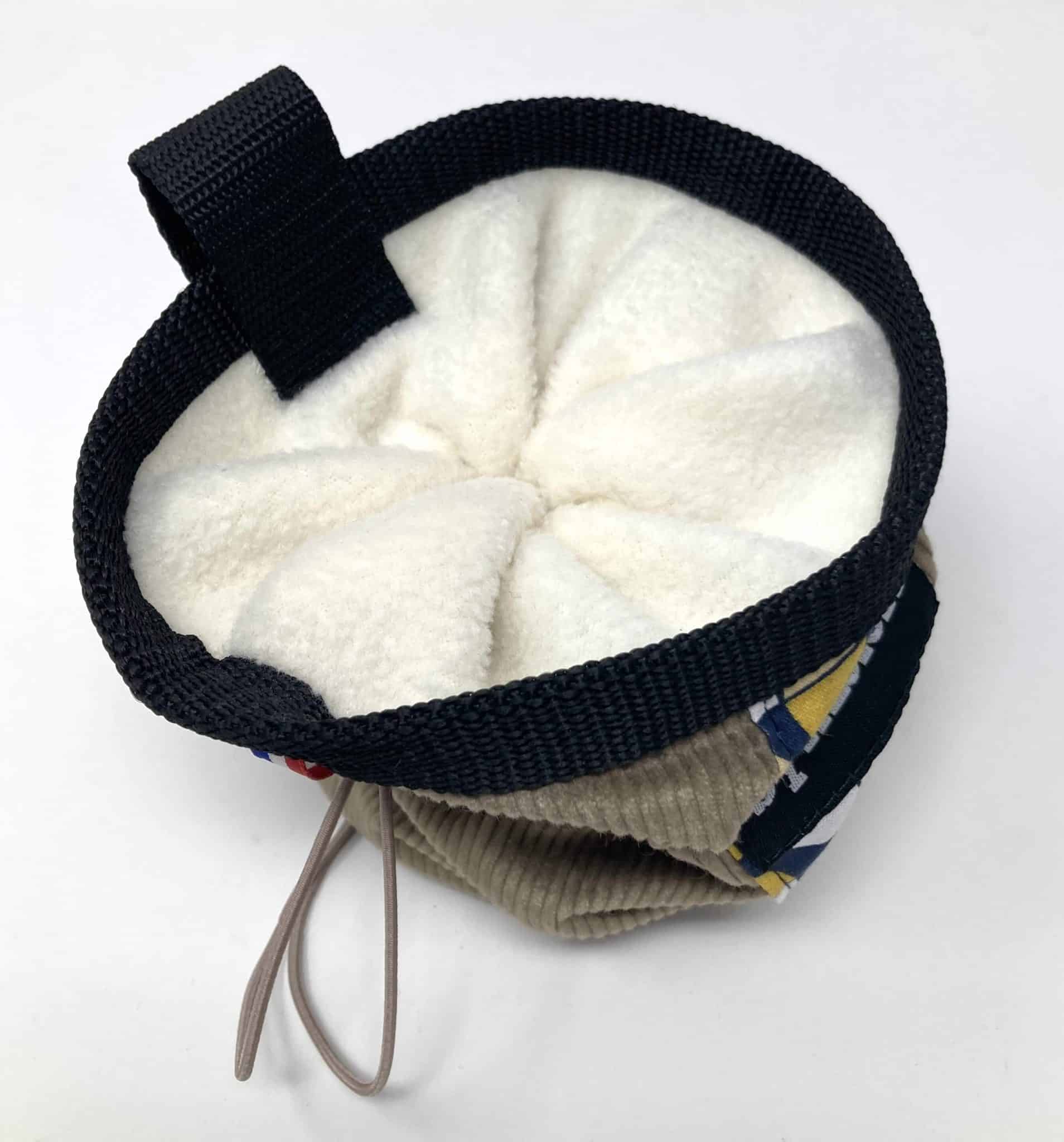 – doublure en polaire pour retenir la magnésie mais surtout parce que c’est agréable…