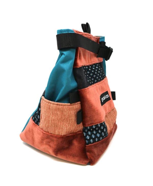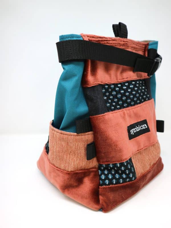 Ce sac à magnésie a été spécialement conçu pour la pratique d’escalade de bloc dans nos ateliers du Pays Basque. Il est 100% éco-responsable, puisqu’il est fabriqué en France, à la main, à partir de tissus de récup (chutes de tissus d’ameublement,  jean, jupe)! Ce sac à pof original possède de nombreuses poches, et deviendra vite votre accessoire d’escalade incontournable!
